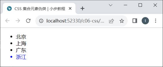ul li(后代选择器)获取到4个li元素,first-child表示获取到集合的第1个li元素。