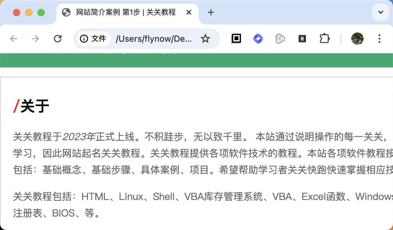 实际页面请点击 网站简介案例 第5步:关于区实现 。