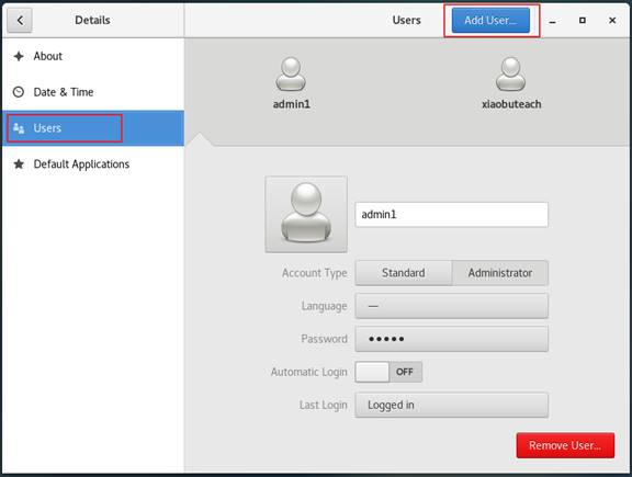 为便于学习用户信息相关文件,先介绍通过图形界面创建两种类型的用户:普通用户与管理员。后续会介绍通过命令实现。